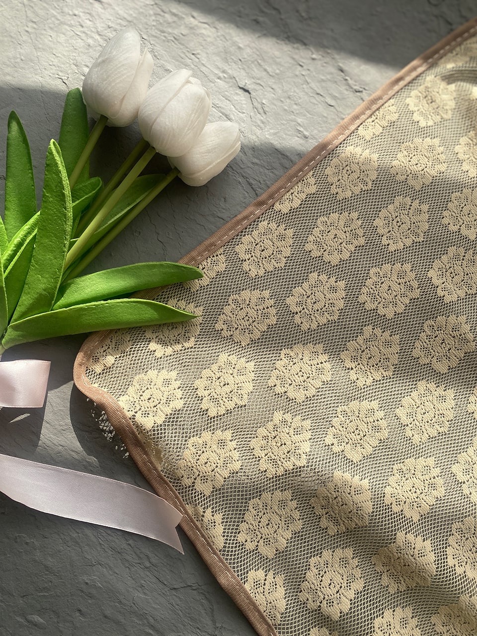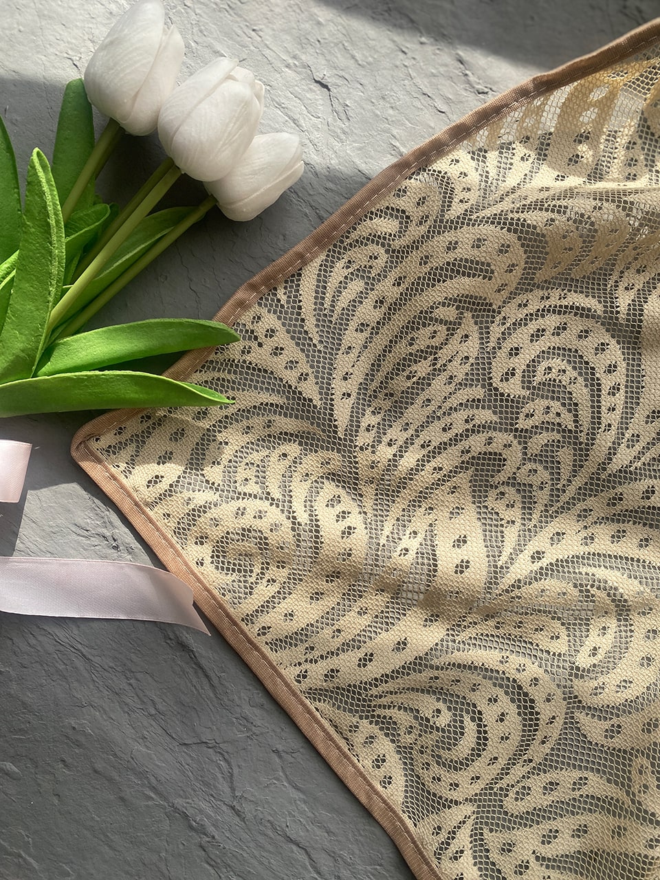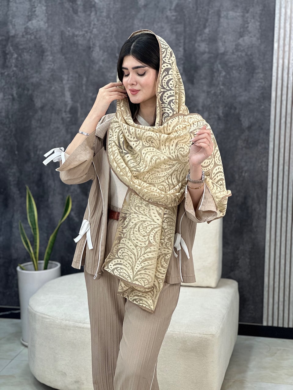 شال توری کرم نسکافه ای (1609)