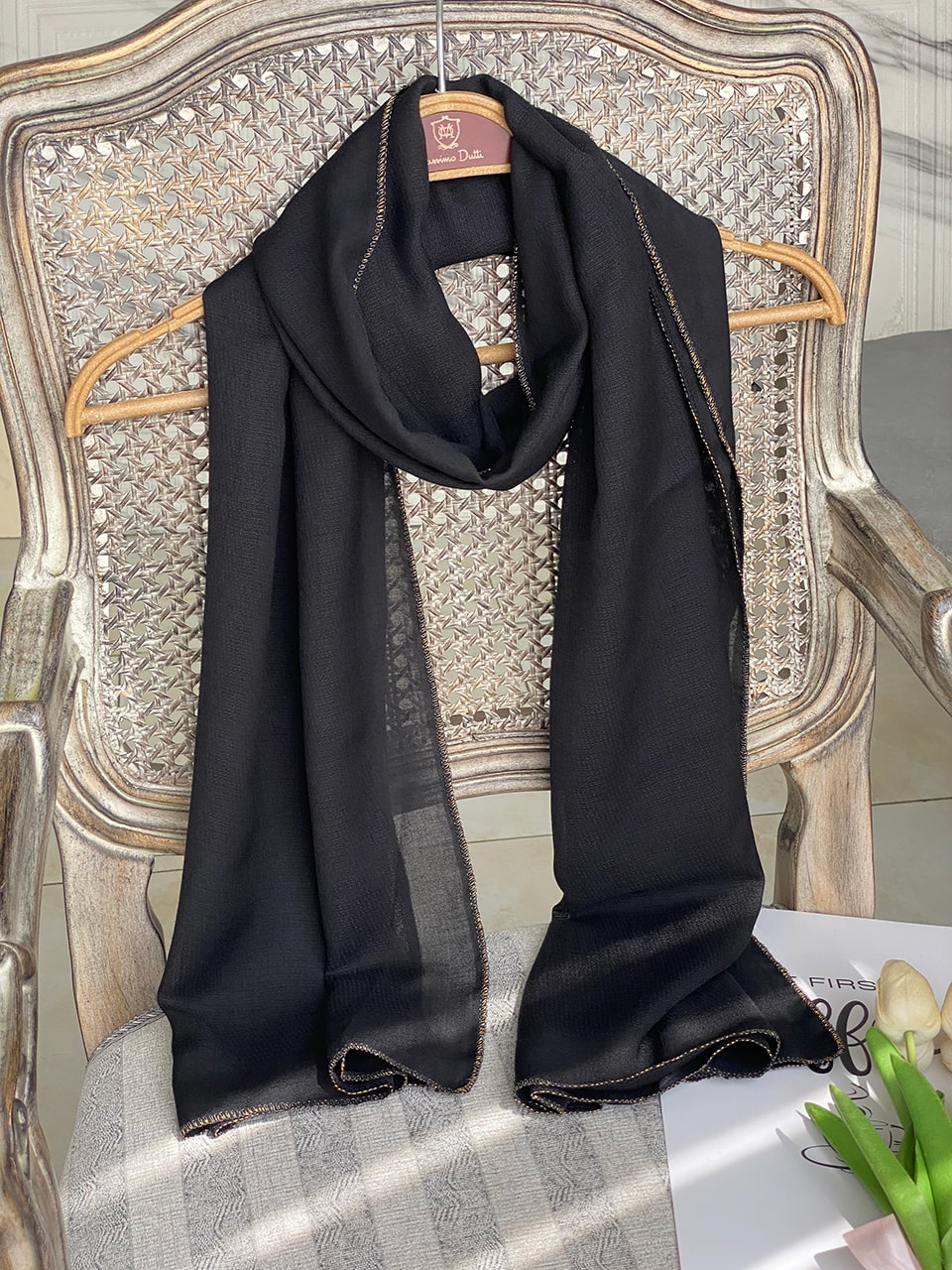 شال مشکی لمه طلایی (1738)