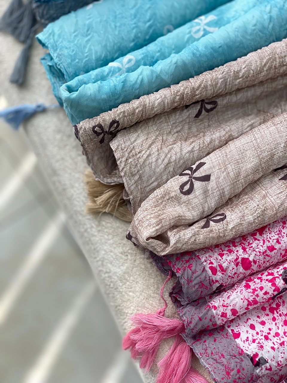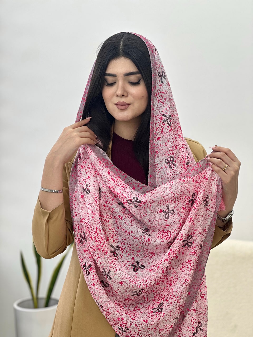 شال پلیسه طرحدار صورتی پودری (1777)